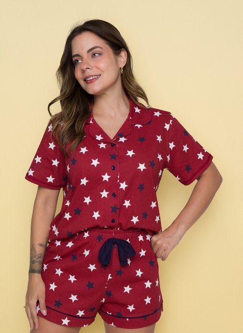Para o Pijama Americano Algodão Curto Estrela Bordô, a Pink Dream desenvolveu uma estampa exclusiva, um all print de estrelas bordô que coordena com uma familia linda que contem masculino e infantis. Tudo isso dentro das mais atualizadas tendencias da moda. Cada cor é selecionada com carinho e cuidado, para que o conjunto fique delicado, fofo e simplesmente incrível para você!