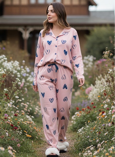 Para o Pijama Feminino Americano Longo Rosa Coração, a Pink Dream desenvolveu um tema de corações em cores contrastantes simplesmente perfeito, o que trouxe fofura e elegância para o pijama. Tudo isso dentro das mais atualizadas tendencias da moda. Cada cor é selecionada com carinho e cuidado, para que o conjunto fique delicado, fofo e simplesmente incrível para você!
