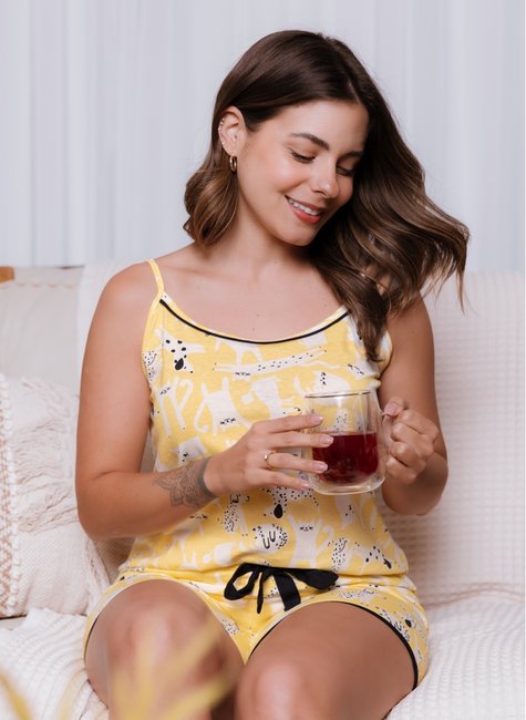 Para o Pijama Feminino Curto Alça Algodão Butter Dog's, a Pink Dream desenvolveu uma estampa exclusiva, um animal print de pets com um fundo amarelo manteiga super fofo e delicado. Tudo isso dentro das mais atualizadas tendencias da moda. Cada cor é selecionada com carinho e cuidado, para que o conjunto fique delicado, fofo e simplesmente incrível para você!