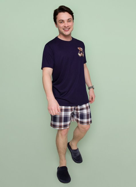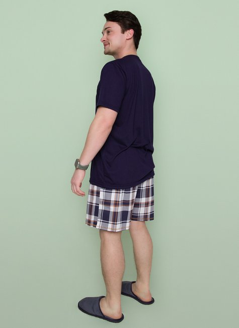 Nosso Pijama Masculino Curto Xadrez Marinho é feito em meia malha 65%Poliéster, 35%Viscose na blusa e 100% Algodão no shorts. A Pink Dream tem o acompanhamento da sua matéria prima. Escolhemos os tipos de fibras que usaremos, na sequencia os tipos de fios e técnicas de tecelagem. Os processos de tingimetno e estamparia são feitos com parceiros da Pink Dream, todos com certificção para os cuidados com o meio ambiente. Assim a Pink Dream entrega a melhor matéria prima, com o menor impacto ambiental.