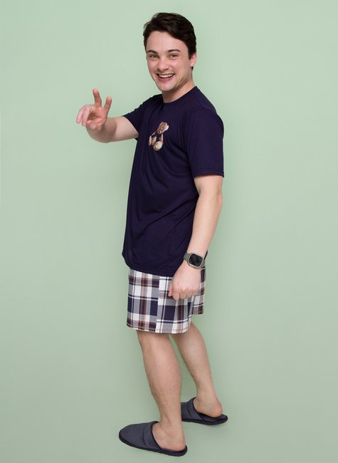 Para o Pijama Masculino Curto Xadrez Marinho, a Pink Dream desenvolveu uma estampa exclusiva no tema xadrez marinho que coordena com uma familia fofinha com modelos feminino e infantil. Tudo isso dentro das mais atualizadas tendencias da moda. Cada cor é selecionada com carinho e cuidado, para que o conjunto fique delicado, fofo e simplesmente incrível para você!